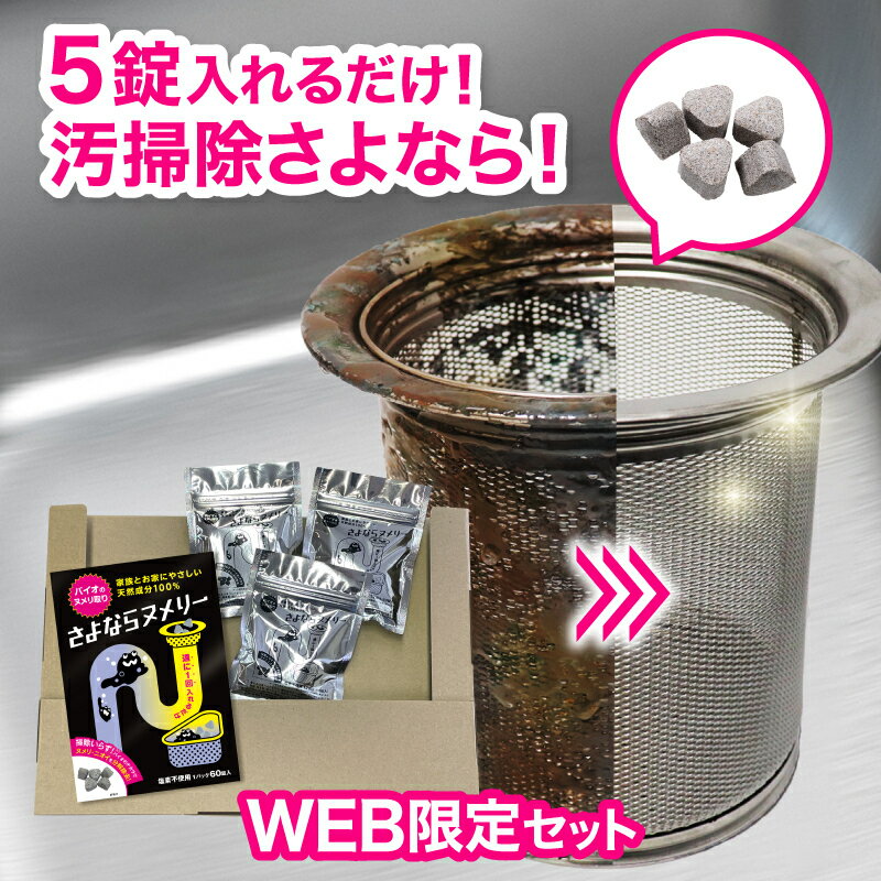 お得なWEB限定割引【さよならヌメリー 3個セット・5個セット】 キッチン 排水口 ヌメリ取り ヌメリ掃除 ヌメリ予防 排水口掃除 排水溝 台所掃除 お風呂掃除 臭い シンク 洗浄剤 洗剤 消臭 バイオ 非塩素 塩素不使用